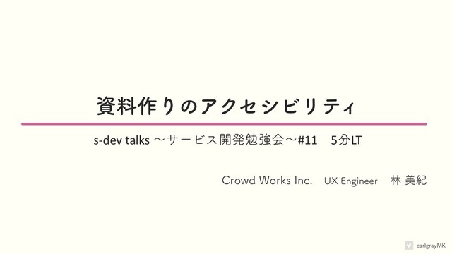 ࢿྉ࡞ΓͷΞΫηγϏϦςΟ s-dev talks ʙαʔϏε։ൃษڧձʙ#11 5LT $SPXE8PSLT*OD 69&OHJOFFS ྛ ඒل FBSMHSBZ.,