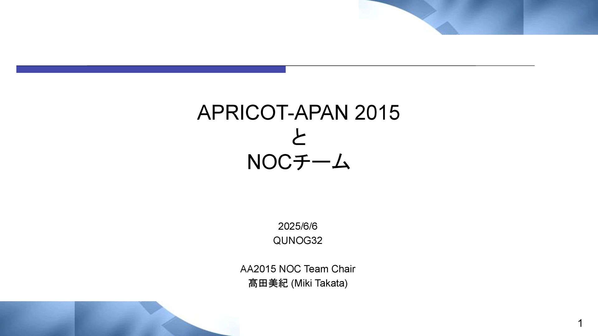 APRICOT-APAN 2015 と NOCチーム 2025/6/6 QUNOG32 AA2015 NOC Team Chair