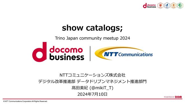 髙⽥美紀 (@mikiT_T) 2024年7⽉10⽇ show catalogs; Trino Japan community meetup 2024