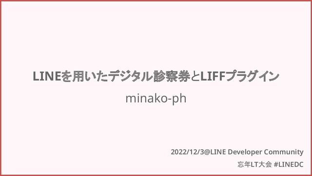 LINEを用いたデジタル診察券とLIFFプラグイン minako-ph 2022/12/3@LINE Developer Community 忘年LT大会 #LINEDC