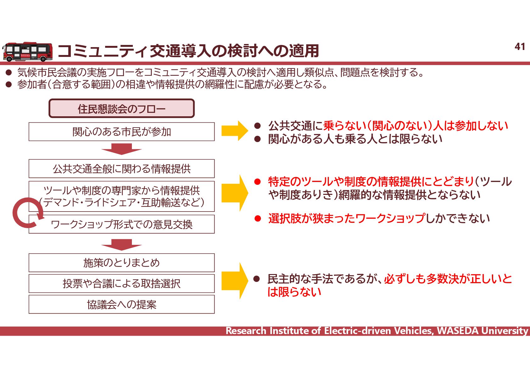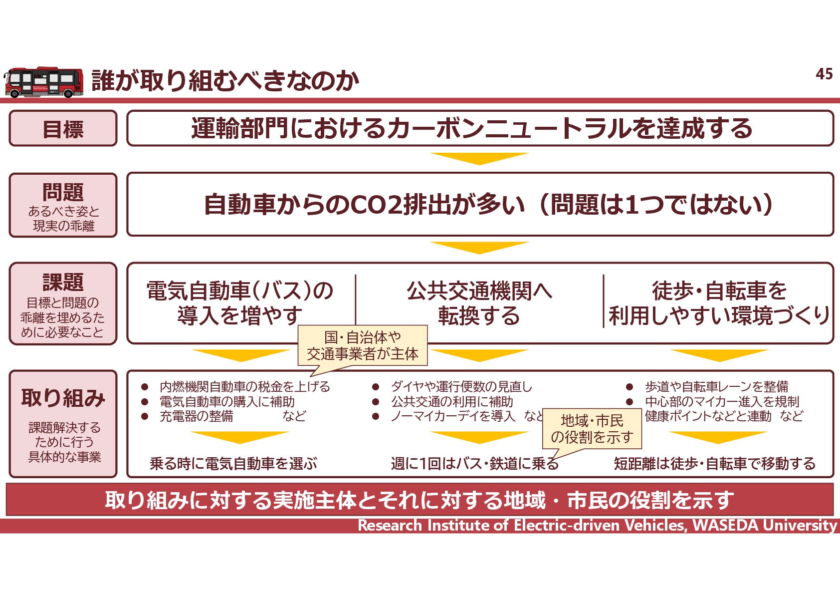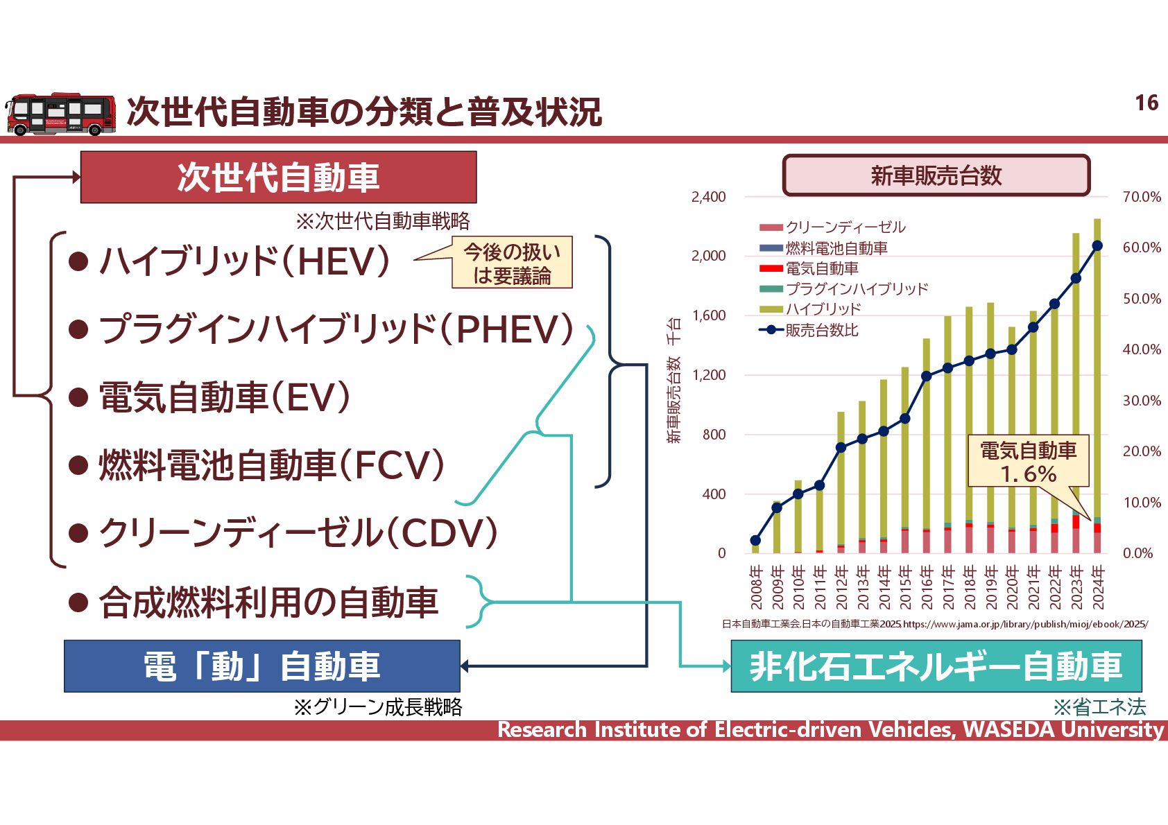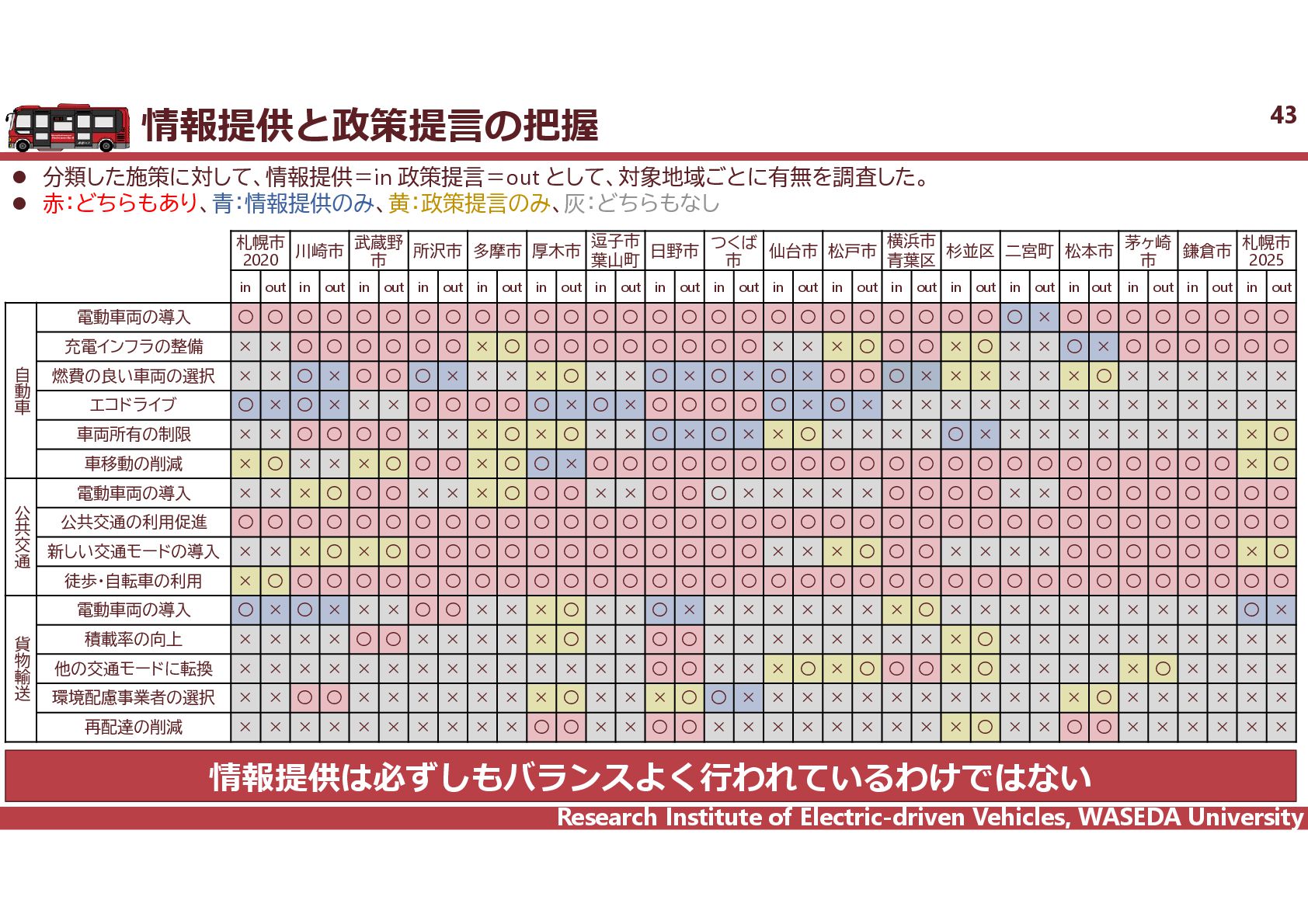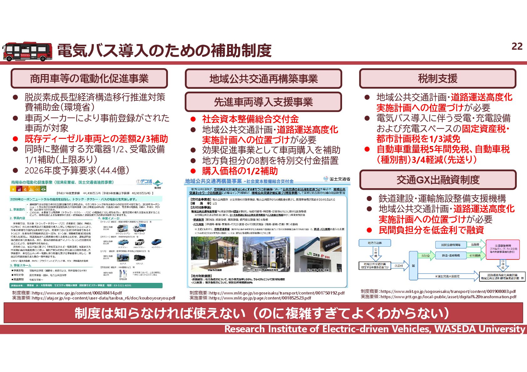 R² = 0.8942 0 20 40 60 80 100 120 140 160 0 2,000 4,000 6,000 8,000 10,000 12,000 14,000 16,000 18,000 電費 km/kWh ⾞両総重量 kg ⾞両総重量と電費の相関 35 電気バス(38車種50路線)、グリーンスローモビリティ(6車種21路線)、超小型モビリティ(8車種11地区)、電動キックボード(6車種 12地区)の電費に加えて、乗用車EV148車種のWTLCモードでの電費を調査し、電費と車両総重量の相関を把握した。 電気バス38車種50路線 電動キックボード 6車種12地区 超小型EV 8車種11地区 GSM 6車種21路線 乗用車148車種 y = 1284.4x-0.746 R² = 0.6738 0 0.5 1 1.5 2 2.5 3 2,000 6,000 10,000 14,000 18,000 電費 km/kWh ⾞両総重量 kg y = 4544.5x-0.859 R² = 0.7163 2 4 6 8 10 12 14 500 1,000 1,500 2,000 2,500 3,000 3,500 電費 km/kWh ⾞両総重量 kg 小型 中型 大型