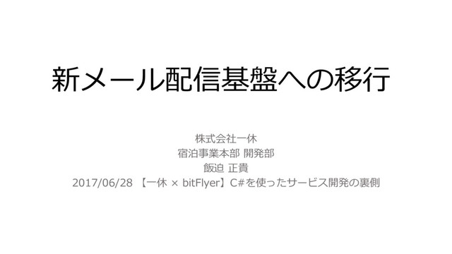 新メール配信基盤への移行 株式会社一休 宿泊事業本部 開発部 飯迫 正貴 2017/06/28 【一休 × bitFlyer】C#を使ったサービス開発の裏側