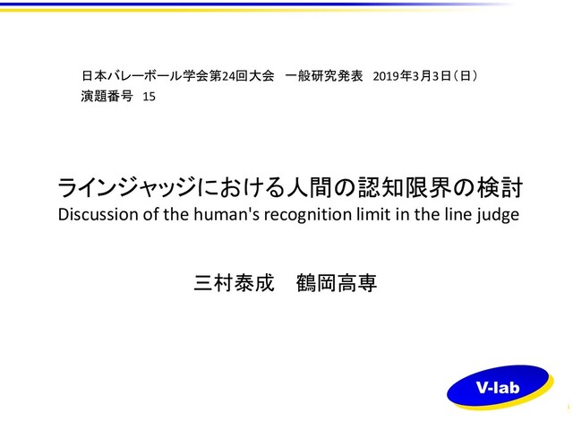 judge 三村泰成 鶴岡高専 日本バレーボール学会第24回大会 一般研究発表 2019年3月3日(日) 演題番号 15