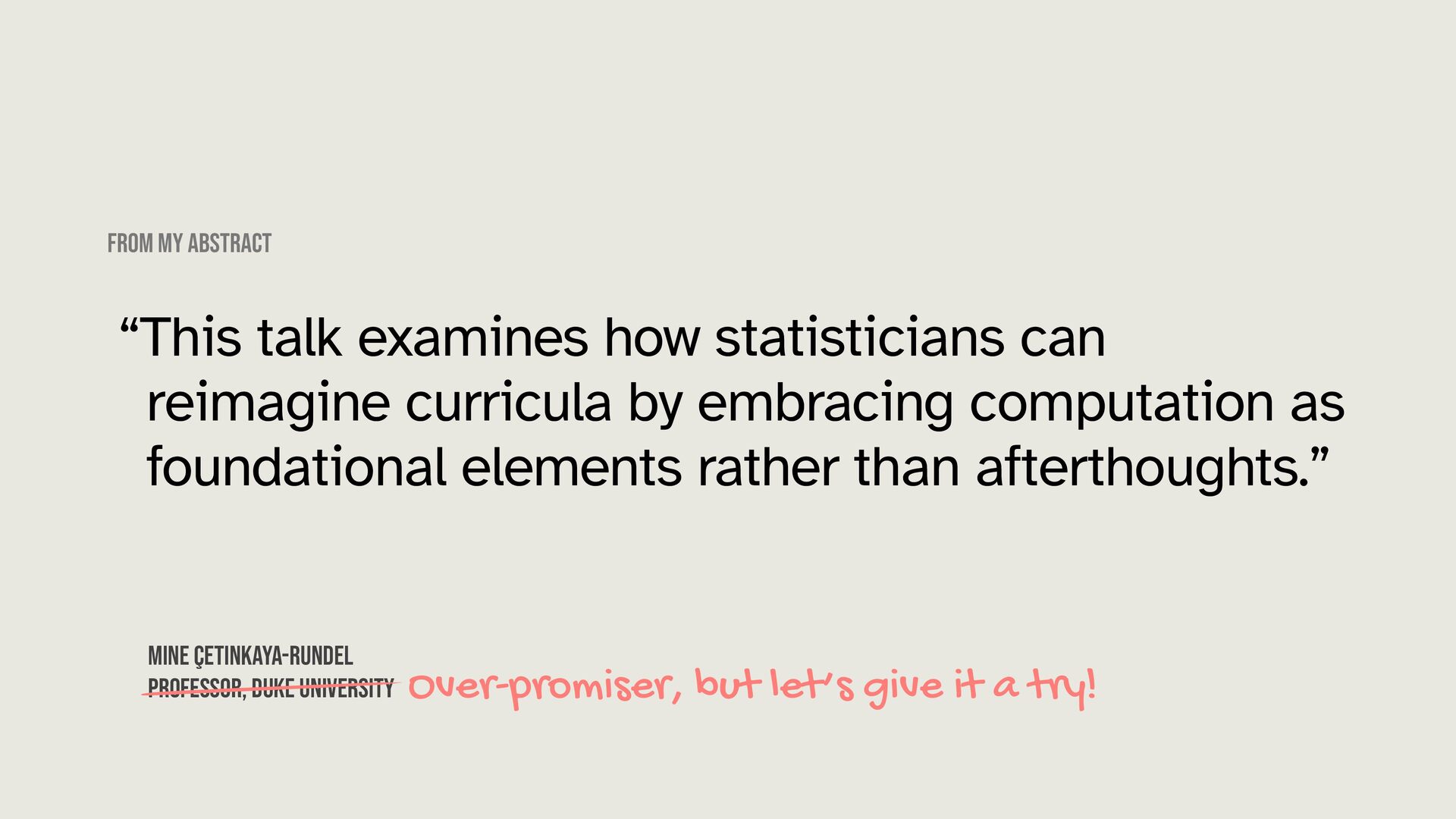 Statistics education stands at a critical juncture as we navigate the intersection of traditional statistical theory, modern computational approaches, and emerging AI technologies. This talk examines how statisticians can reimagine curricula by embracing computation as a foundational element rather than an afterthought. While traditional statistics education has prioritized theoretical frameworks and applications, computation has emerged as the backbone of contemporary data analysis—from data acquisition and wrangling to visualization, modeling, and communication. Now, AI tools are further transforming this landscape, creating both opportunities and challenges for statistics and data science educators. The presentation will outline a forward-looking curriculum model for introductory courses that balances statistical thinking, data science methods, and explicit computational instruction.