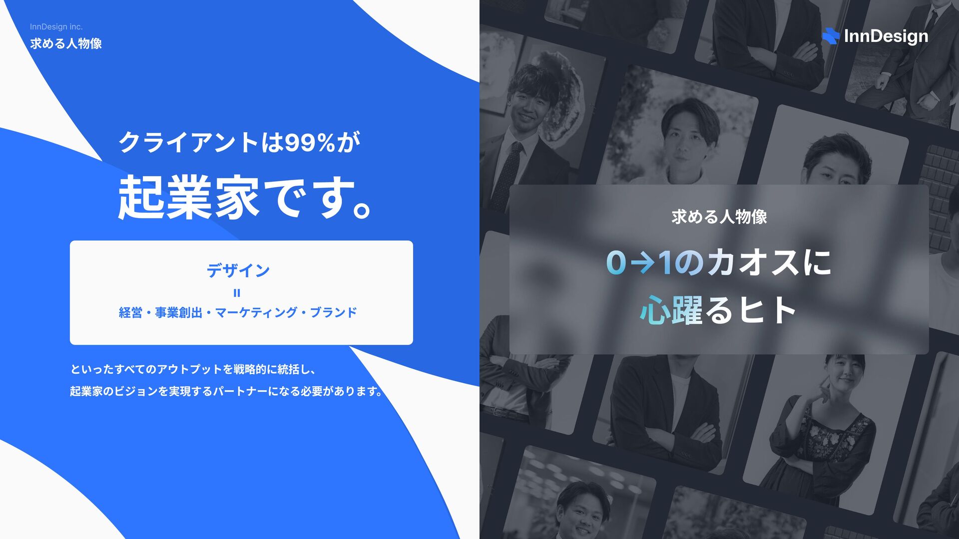 塩野さま ローンチまでの短いスケジュールの中でも要望を 汲み取ってくれて、納得のいくプレスリリースを 打つことができました。 ABCD株式会社 代表取締役社長 塩野さま ローンチまでの短いスケジュールの中でも要望を 汲み取ってくれて、納得のいくプレスリリースを 打つことができました。 Acroforce株式会社 代表取締役社長 高橋さま 事業戦略を解像度高くデザインに落とし込んでく れる、新規事業の立ち上げに欠かせないデザイン パートナーです。 Acroforce株式会社 代表取締役社長 高橋さま 事業戦略を解像度高くデザインに落とし込んでく れる、新規事業の立ち上げに欠かせないデザイン パートナーです。 株式会社HARTi 代表取締役社長 吉田さま パートナーとしてビジョンに共感していただき、 シードラウンドから納得のいく「ブランド」を実 現することができました。 株式会社HARTi 代表取締役社長 吉田さま パートナーとしてビジョンに共感していただき、 シードラウンドから納得のいく「ブランド」を実 現することができました。 SWis e株式会社 代表取締役社長 邱 さま SaaS ビジ ネ スの UX向 上 や の マ ーケ ティ ン グ 戦略 まで 幅広 く 相談 できて、事業の 成長 ス ピ ードが 加 速 したと 思 います。 SWis e株式会社 代表取締役社長 邱 さま SaaS ビジ ネ スの UX向 上 や の マ ーケ ティ ン グ 戦略 まで 幅広 く 相談 できて、事業の 成長 ス ピ ードが 加 速 したと 思 います。 株式会社 テ ッ クピ ッ ト 代表取締役社長 山 田 晃平 ローンチまでの短いスケジュールの中で 汲み取ってくれて、納得のいくプレスリ 打つことができました。 株式会社 テ ッ クピ ッ ト 代表取締役社長 山 田 晃平 ローンチまでの短いスケジュールの中で 汲み取ってくれて、納得のいくプレスリ 打つことができました。 ラ イトアップベン チャ ー ズ 株式会社 代表取締役社長 中村 さま ローンチまでの短いスケジュールの中でも要望を ラ イトアップベン チャ ー ズ 株式会社 代表取締役社長 中村 さま ローンチまでの短いスケジュールの中でも要望を 株式会社 Ess e n 代表取締役 橘 さま 事業戦略を解像度高くデザインに落とし込んでく 株式会社 Ess e n 代表取締役 橘 さま 事業戦略を解像度高くデザインに落とし込んでく KOMMONS 最 高 経営責任者 C EO 白塚 さま パートナーとしてビジョンに共感していただき、 KOMMONS 最 高 経営責任者 C EO 白塚 さま パートナーとしてビジョンに共感していただき、 株式会社 エ ー ジェ ン ト 代表取締役 四宮 さま SaaS ビジ ネ スの UX向 上 や の マ ーケ ティ ン グ 戦略 株式会社 エ ー ジェ ン ト 代表取締役 四宮 さま SaaS ビジ ネ スの UX向 上 や の マ ーケ ティ ン グ 戦略 ENt r an ce株式会社 代表取締役 C EO WangXuan ローンチまでの短いスケジュールの中で ENt r an ce株式会社 代表取締役 C EO WangXuan ローンチまでの短いスケジュールの中で の中でも要望を レスリリースを の中でも要望を レスリリースを 株式会社 しんめ 代表取締役社長 下村 さま 会社 を 設 立したときの、 経営者 としての 想 いを納 得いくまで 議論 することができ、デザインで 表 現 することができました。 株式会社 しんめ 代表取締役社長 下村 さま 会社 を 設 立したときの、 経営者 としての 想 いを納 得いくまで 議論 することができ、デザインで 表 現 することができました。 株式会社ア ウ ト ラウド 代表取締役 朝澤 さま プロ ダク トの 開発段階 でも、 マ ーケ ティ ン グ目線 で 的確 な ア ド バ イスから、 成長フェ ー ズ に 合わ せ たブランドを 運用 することができました。 株式会社ア ウ ト ラウド 代表取締役 朝澤 さま プロ ダク トの 開発段階 でも、 マ ーケ ティ ン グ目線 で 的確 な ア ド バ イスから、 成長フェ ー ズ に 合わ せ たブランドを 運用 することができました。 ゼロ ス リ ー株式会社 代表取締役社長 石井 さま グ ロー バ ルを 視野 に 入 れた要望も 対応 してくだ さ 理 、 言語化 しきれてないとこ ろ も 考え抜 いてくれ るので 安心 して お まかせできます。 ゼロ ス リ ー株式会社 代表取締役社長 石井 さま グ ロー バ ルを 視野 に 入 れた要望も 対応 してくだ さ 理 、 言語化 しきれてないとこ ろ も 考え抜 いてくれ るので 安心 して お まかせできます。 株式会社 IXMILE 代表取締役社長 西村 優吾 地方 に 向け の マ ーケ ティ ン グ 戦略の解像度も高 く、デザイン は もち ろ ん コ ン テ ン ツ の 提案 までし てくれるパートナーです。 株式会社 IXMILE 代表取締役社長 西村 優吾 地方 に 向け の マ ーケ ティ ン グ 戦略の解像度も高 く、デザイン は もち ろ ん コ ン テ ン ツ の 提案 までし てくれるパートナーです。 A 経 ロ 汲 打 A 経 ロ 汲 打 InnDesign