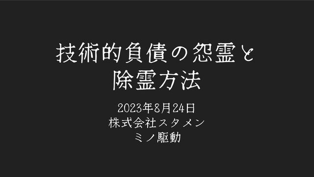 技術的負債の怨霊と 除霊方法 2023年8月24日 株式会社スタメン ミノ駆動