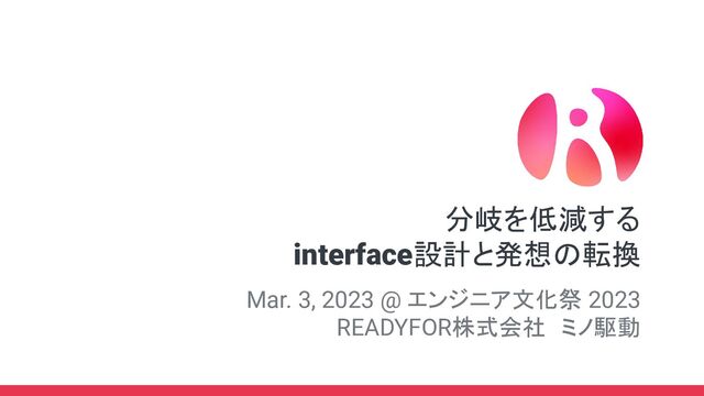 2023/03/03、エンジニア文化祭2023の登壇資料です。 『分岐を低減するinterface設計と発想の転換』 https://forkwell.connpass.com/event/272596/