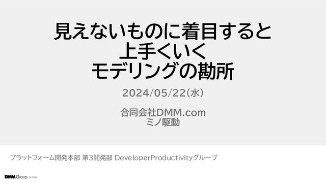 © DMM © DMM 見えないものに着目すると 上手くいく モデリングの勘所 2024/05/22(水) 合同会社DMM.com ミノ駆動