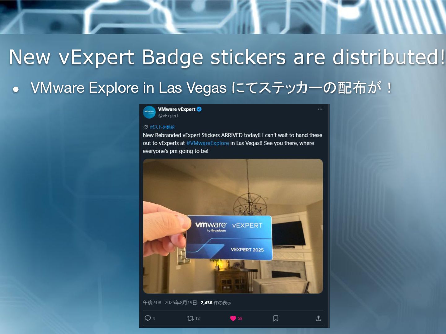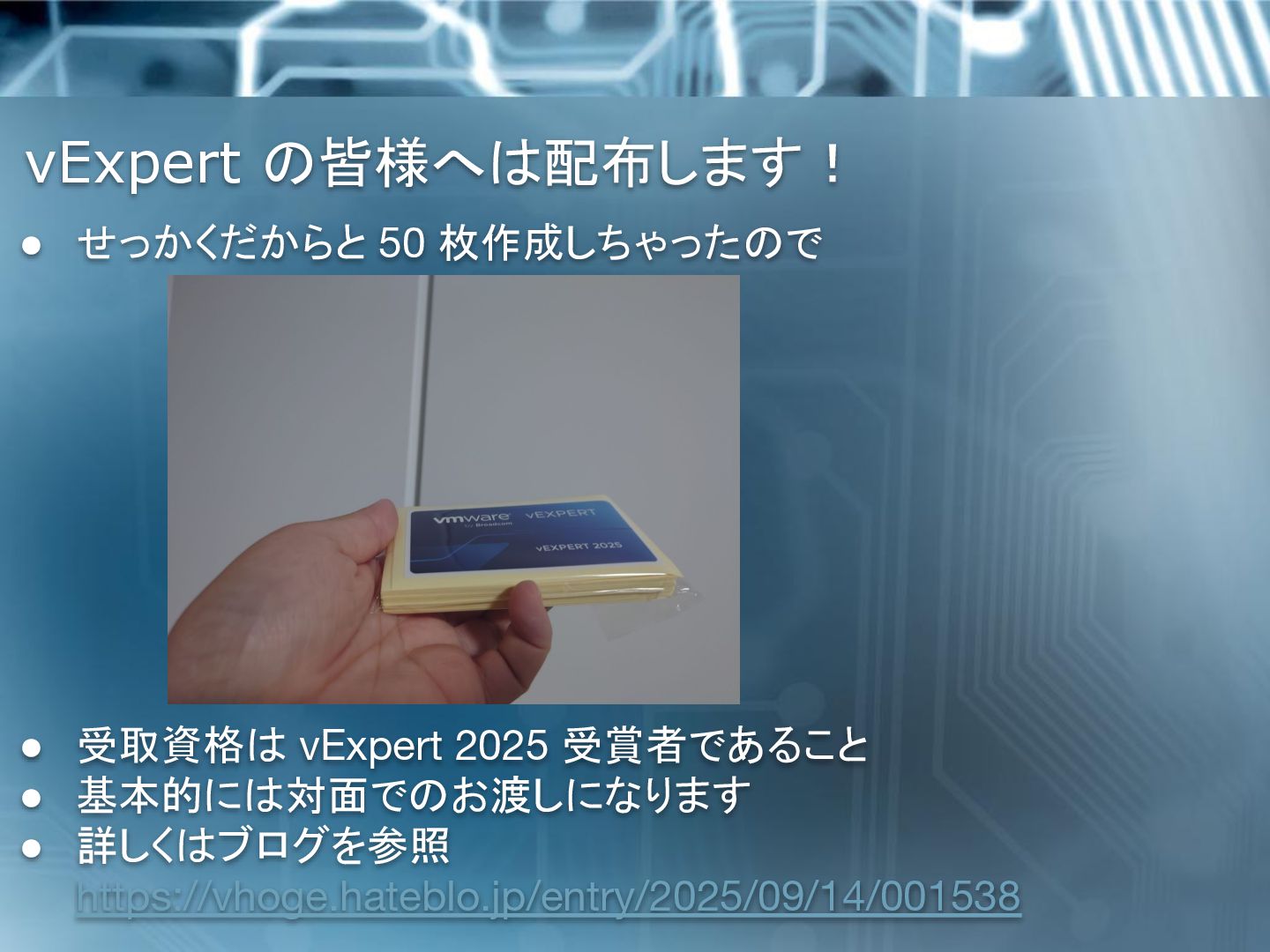 7. vExpert の皆様へは配布します! • せっかくだからと 50 枚作成しちゃったので • 受取資格は vExpert 2025