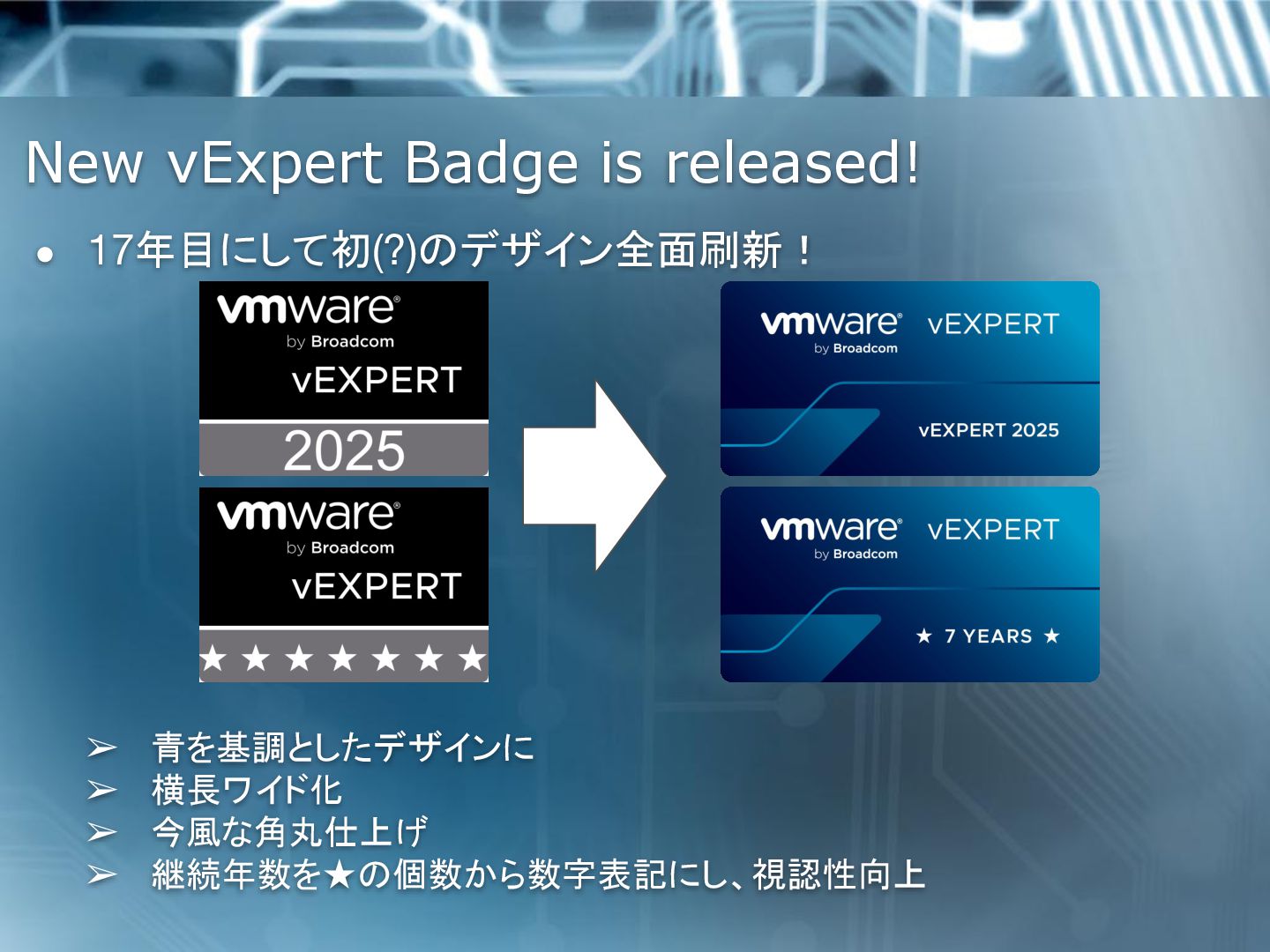 1. New vExpert Badge is released! • 17年目にして初(?)のデザイン全面刷新! ➢ 青を基調としたデザインに ➢