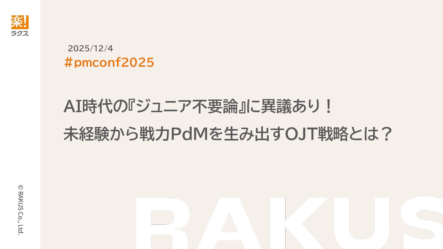 © RAKUS Co., Ltd. AI時代の『ジュニア不要論』に異議あり! 未経験から戦力PdMを生み出すOJT戦略とは? #pmconf2025 2025/12/4