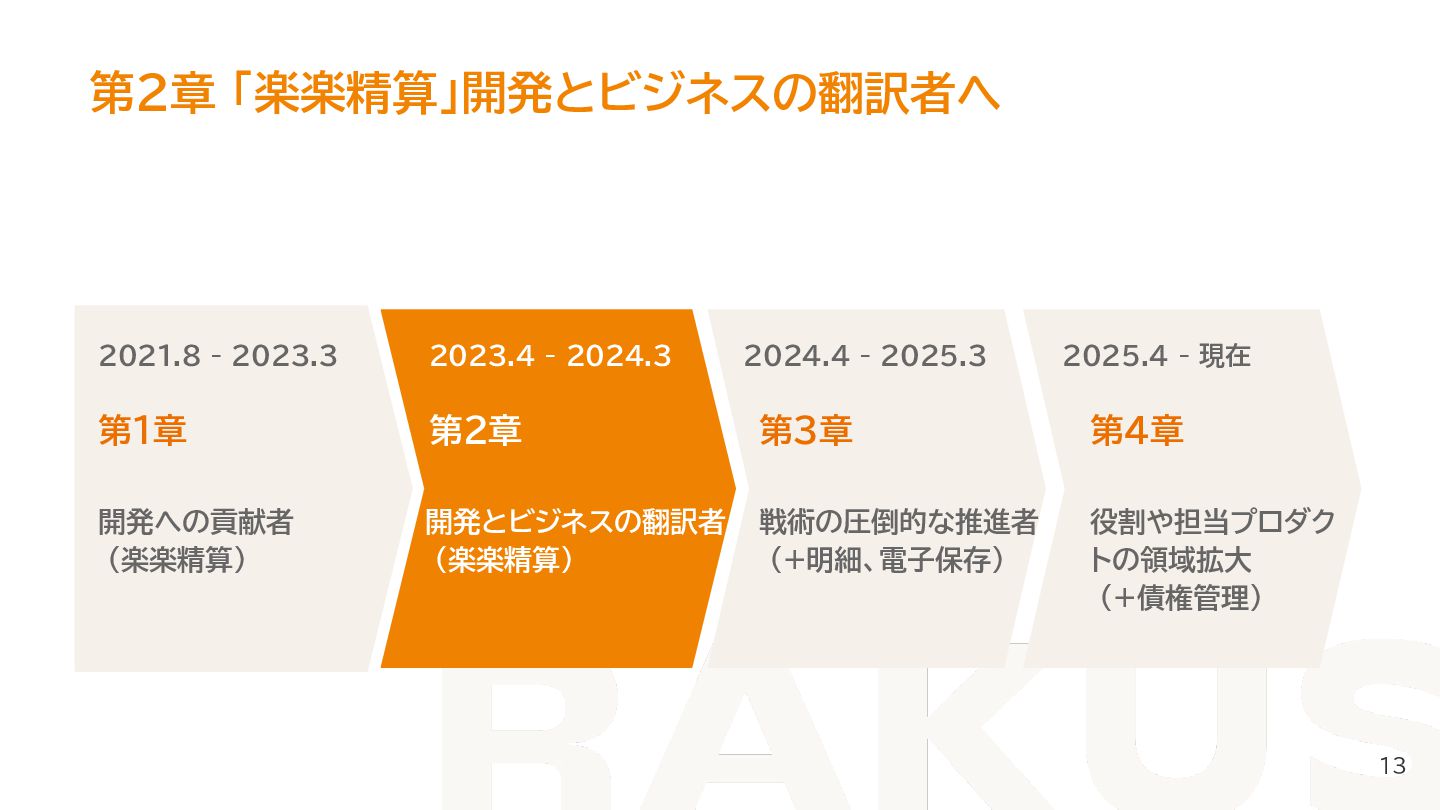 第2章 「楽楽精算」開発とビジネスの翻訳者へ 13 2021.8 - 2023.3 第1章 開発への貢献者 (楽楽精算) 2023.4