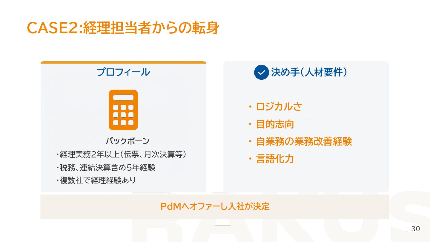 ・ 目的志向 ・ 自業務の業務改善経験 ・ 言語化力 PdMへオファーし入社が決定
