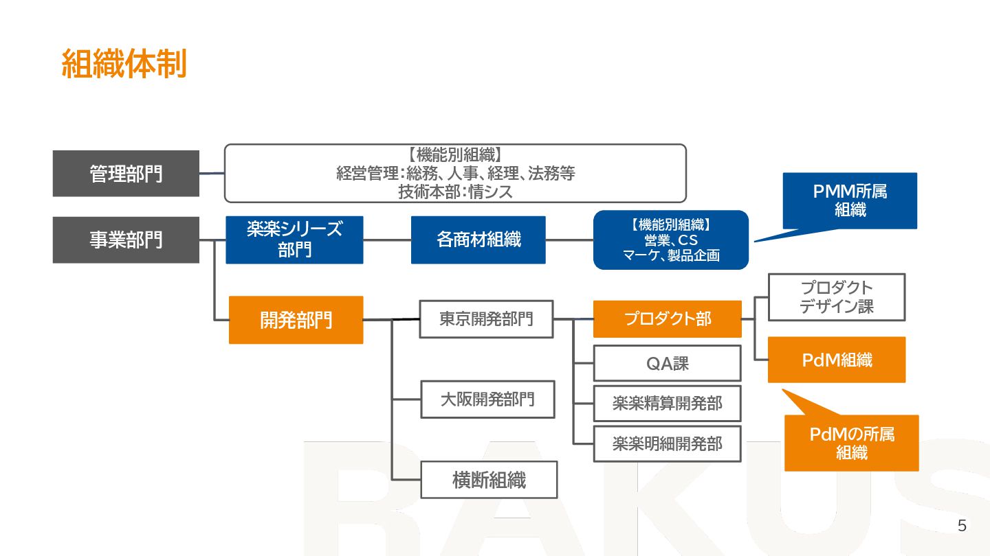 組織体制 5 管理部門 事業部門 楽楽シリーズ 部門 開発部門 各商材組織 横断組織 【機能別組織】