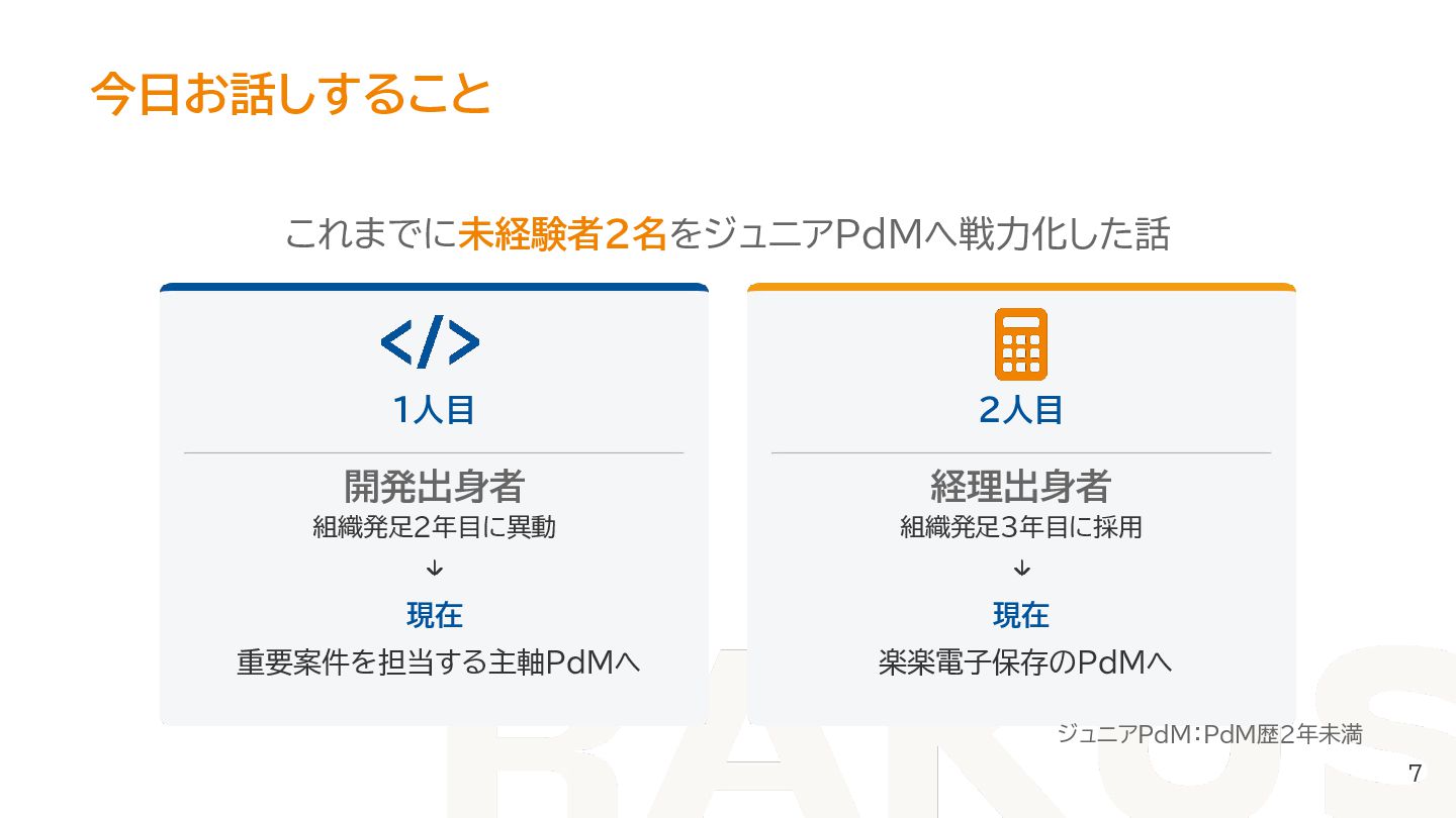 現在 楽楽電子保存のPdMへ これまでに未経験者2名をジュニアPdMへ戦力化した話 ジュニアPdM:PdM歴2年未満