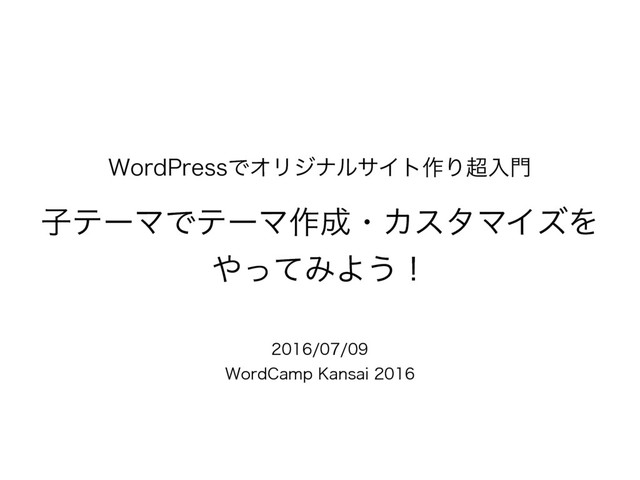 WordCamp kansai 2016のハンズオンスライド WordPressの公式テーマをカスタマイズする上で知っておく必要がある子テーマ。 子テーマでカスタマイズをしないと、テーマアップデートの際にカスタマイズしたところが消えてしまう恐れがあります...。 そうならないために、このハンズオンでは子テーマの作り方・カスタマイズ方法を紹介します。 子テーマは難しいことはありません!子テーマで公式テーマのカスタマイズをやってみましょう!