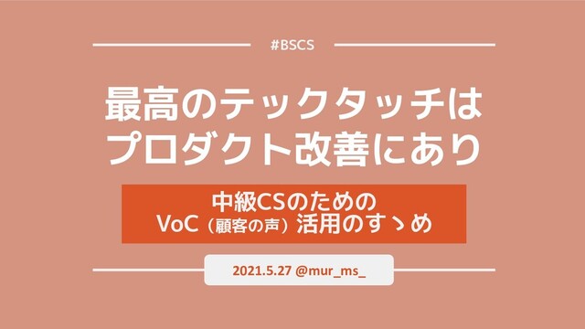 2021.5.27 @mur_ms_ #BSCS 最高のテックタッチは プロダクト改善にあり 中級CSのための VoC(顧客の声)活用のすゝめ