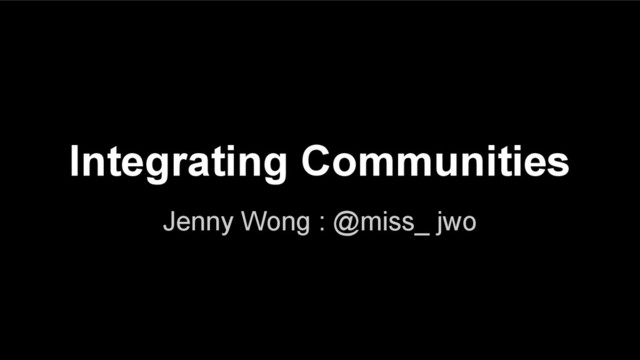 Integrating Communities Jenny Wong : @miss_ jwo