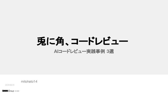 © DMM © DMM CONFIDENTIAL 兎に角、コードレビュー AIコードレビュー実践事例 3選 mitohato14 2025/08/20