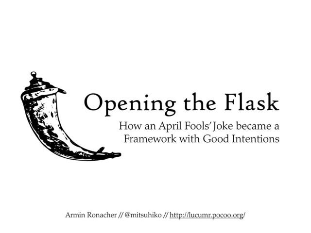 Content licensed under the Creative Commons attribution-noncommercial- sharealike License. Images vectorized from images from Wiki Commons (http://commons.wikimedia.org/) and public domain sources. Individual copyrights apply. Talk available for download at http://lucumr.pocoo.org/talks/