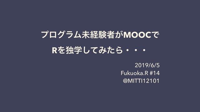 ϓϩάϥϜະܦݧऀ͕MOOCͰ RΛಠֶͯ͠ΈͨΒɾɾɾ 2019/6/5 Fukuoka.R #14 @MITTI12101