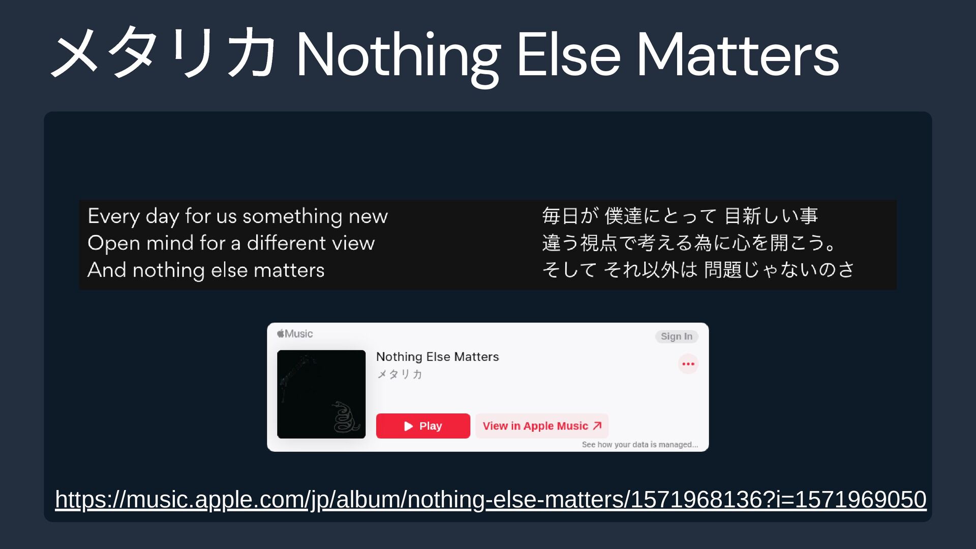 ⑩ Metallica "Nothing Else Matters" の歌詞