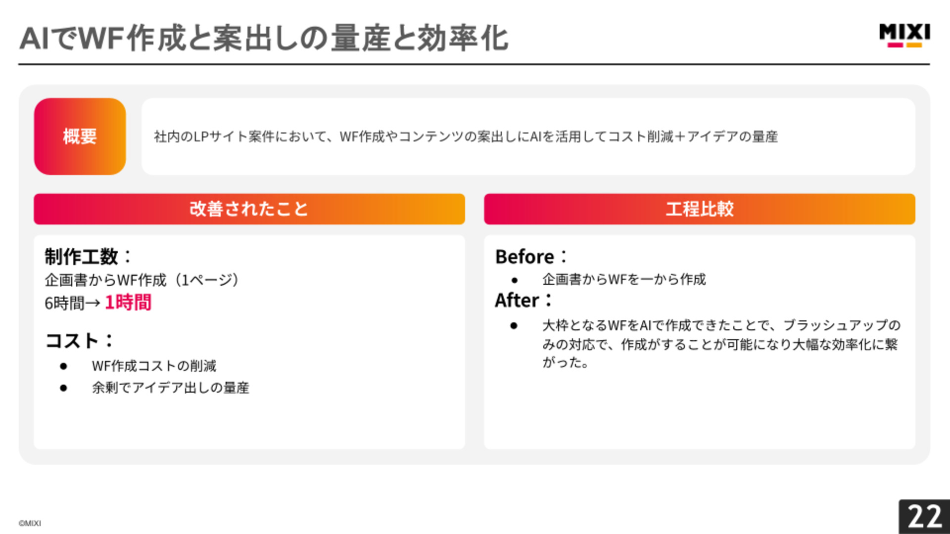 MIXIの横断デザイン組織であるデザイン本部のUI UXを司る部署が1年以上にわたり取り組んできたAI活用・検証の実践事例を起点に、AI活用の成功・失敗のリアルな現場の声を共有。