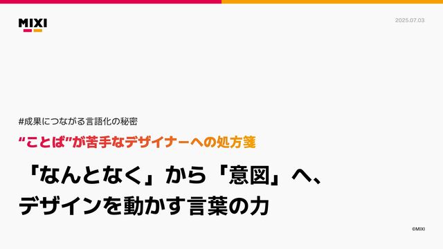 「KYOTO CREATIVE COLLECTION 2025」のサイドイベント『成果につながる言語化の秘密【デザナレコレクション2025 Vol.2】』でのデザイン本部 ジウンの登壇資料です。