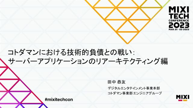 MIXI TECH CONFERENCE 2023 にてお話した田中の資料です。