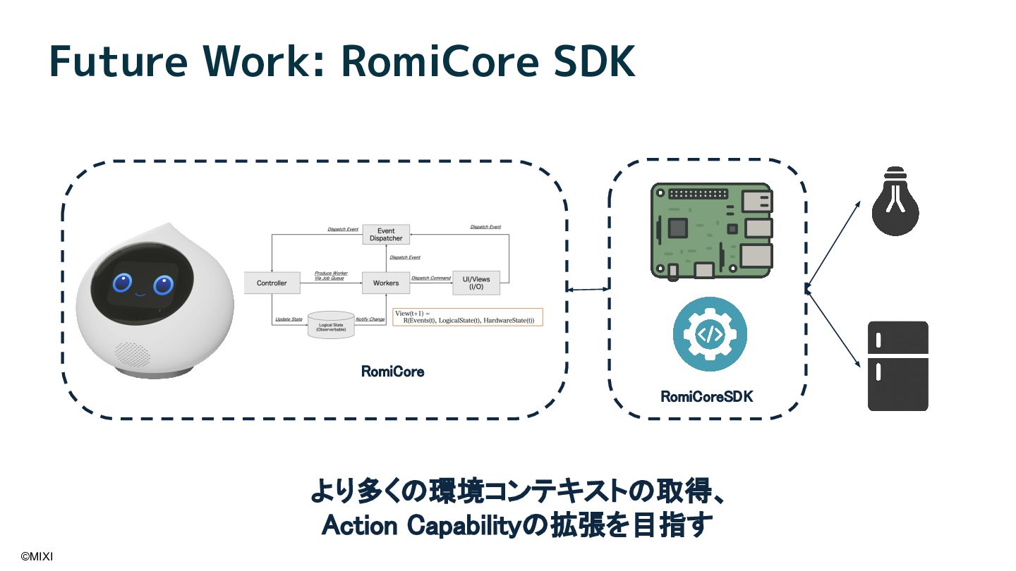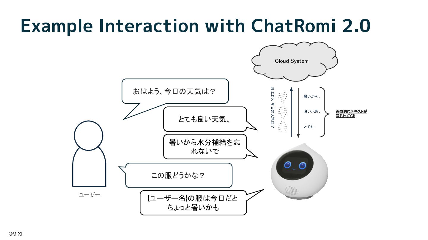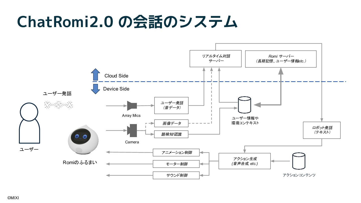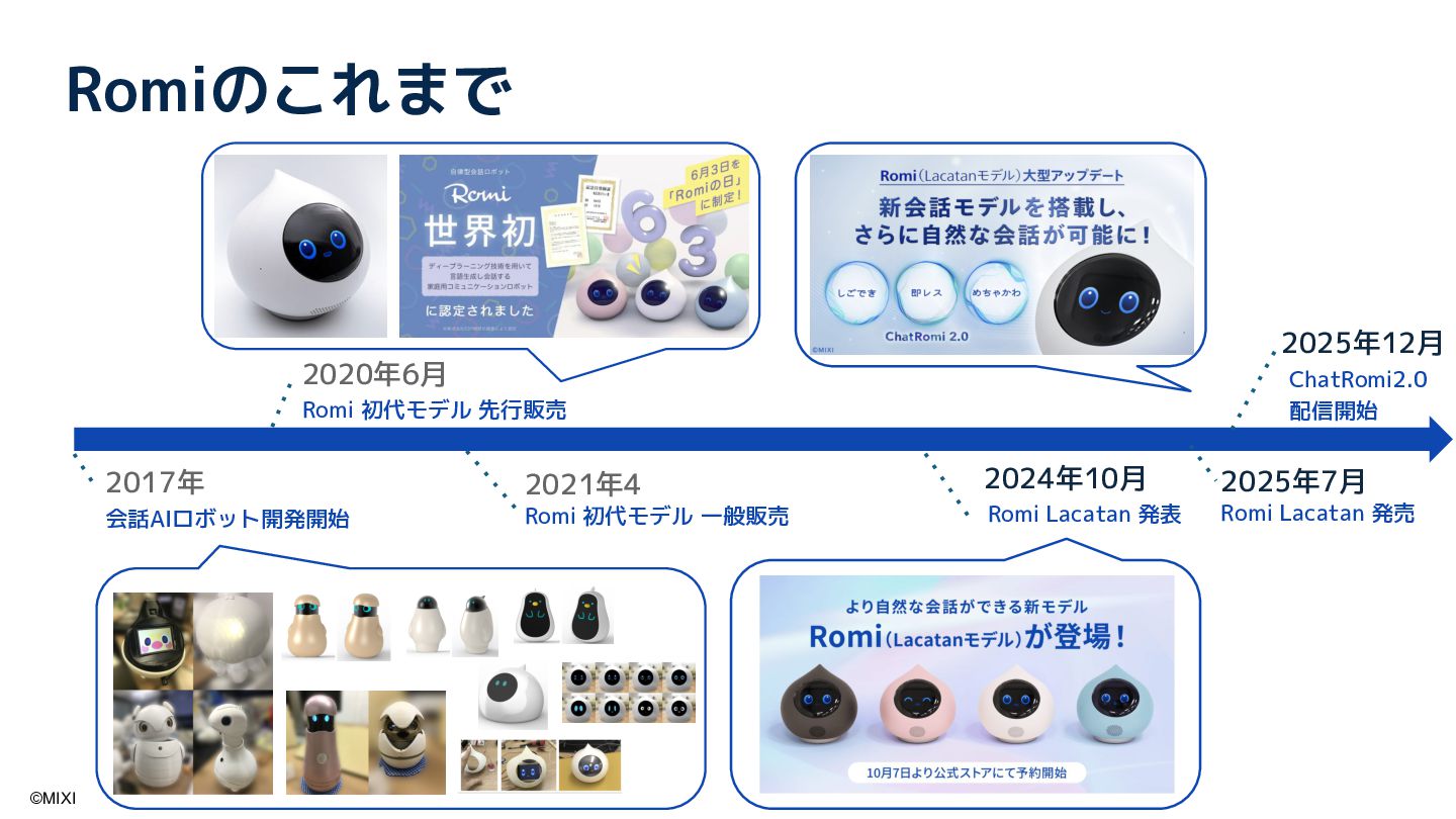 会話AIロボットRomiは、AIと物理的な身体性を融合することで、統合的な会話体験を実現しています。近年、OpenAI社が提供する gpt-realtime をはじめとしたリアルタイム会話モデルの登場により、ロボットとの対話は大きく進化しています。本講演では、音声や視覚といった各種モダリティに加え、外部情報や長期記憶を統合し、自然な会話を実現するためのソフトウェアアーキテクチャについて紹介します。