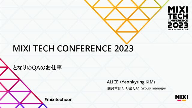 MIXI TECH CONFERENCE 2023 にてお話したALICE(キムヨンギョン)の資料です。