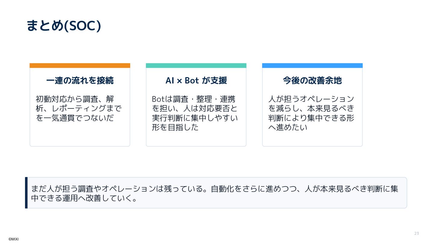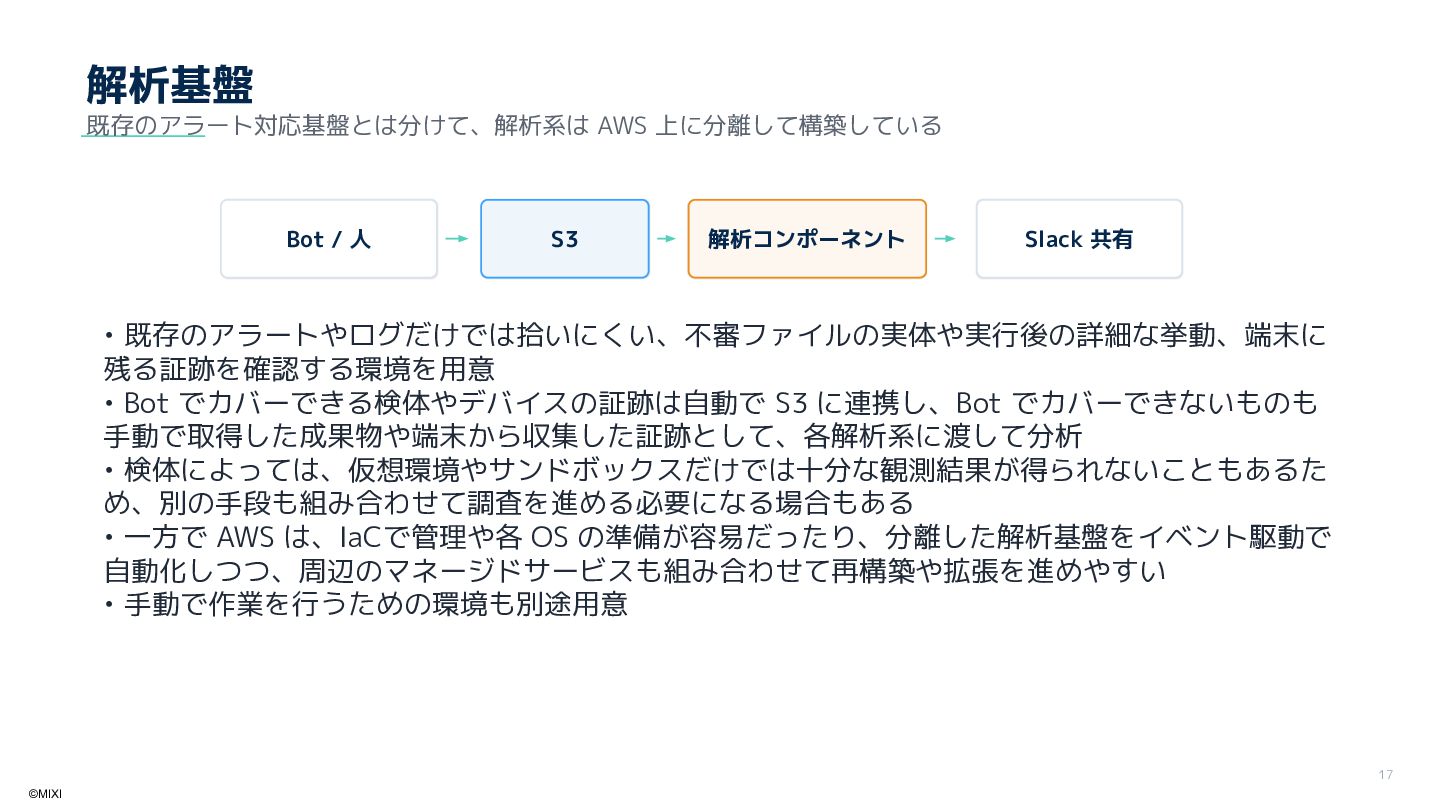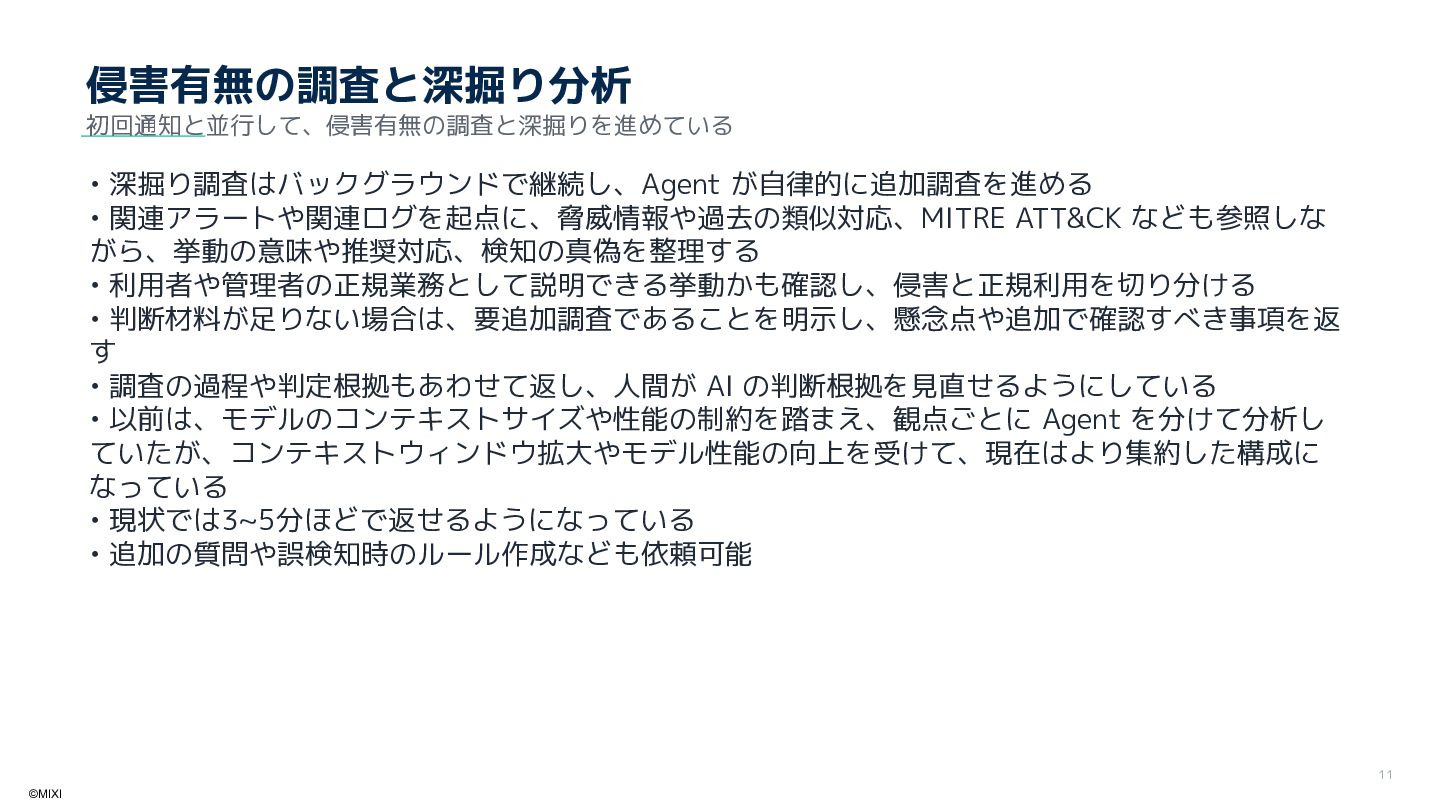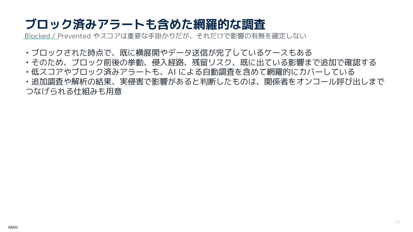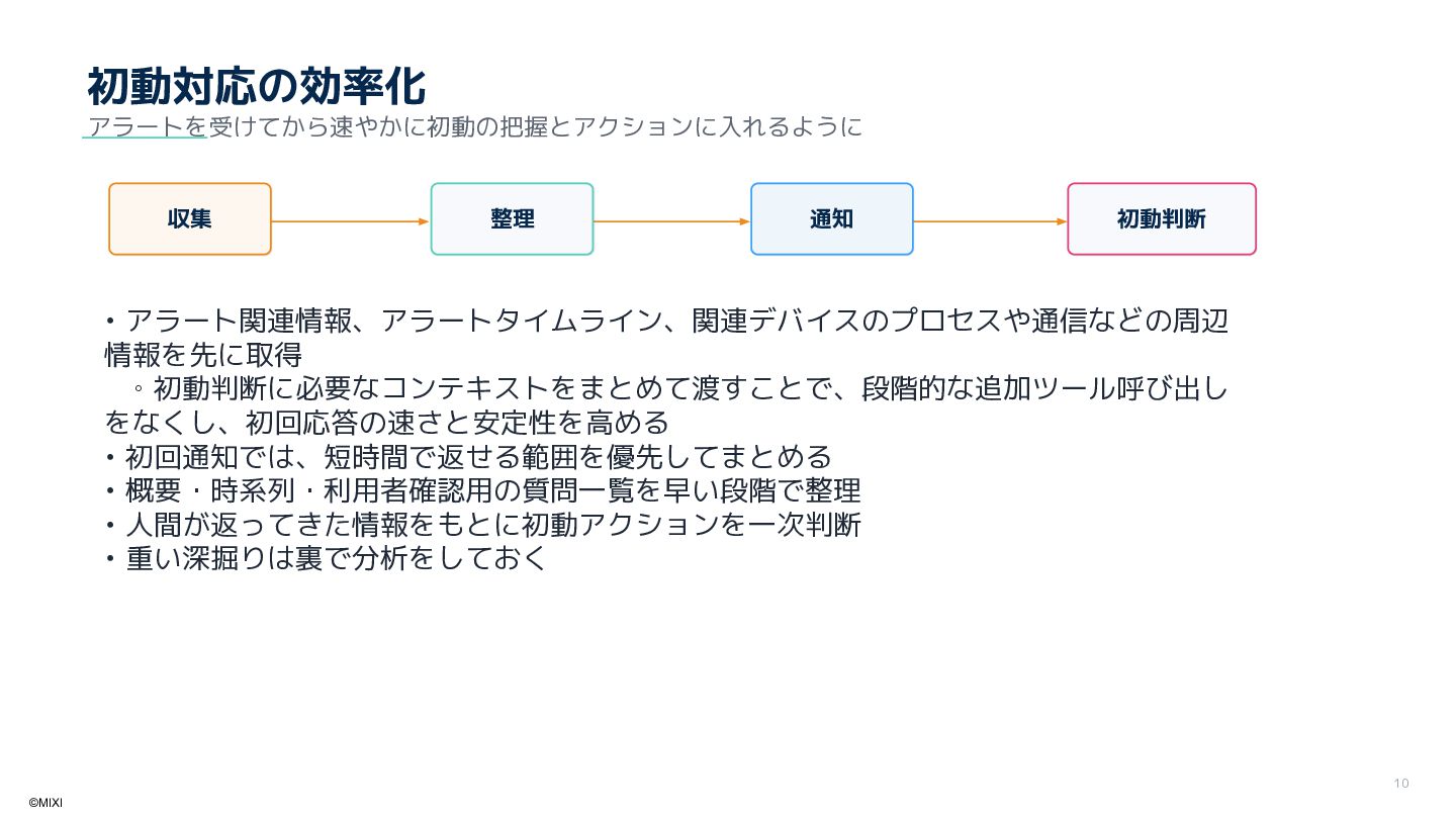 当社では開発環境やPCに対して情報セキュリティの監視を行っています。従来であれば自動で上がったアラートへの対応や調査には専門人材が必要となります。当社ではAIを活用することで専門人材の数を当期計画から4名削減しつつ、ソフトウェアサプライチェーン含めた最新リスクに対処可能なシステムと体制を構築しており、その運用の一部を紹介します。