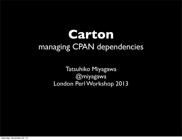 Carton managing CPAN dependencies Tatsuhiko Miyagawa @miyagawa London Perl Workshop