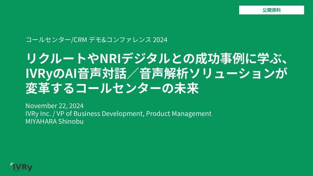 2024年11月21日(木)・22日(金)に開催された「コールセンター/CRM デモ&コンファレンス 2024 in Tokyo」において、最終日に実施されたセミナープログラム(参考:講師インタビュー)での発表資料になります。