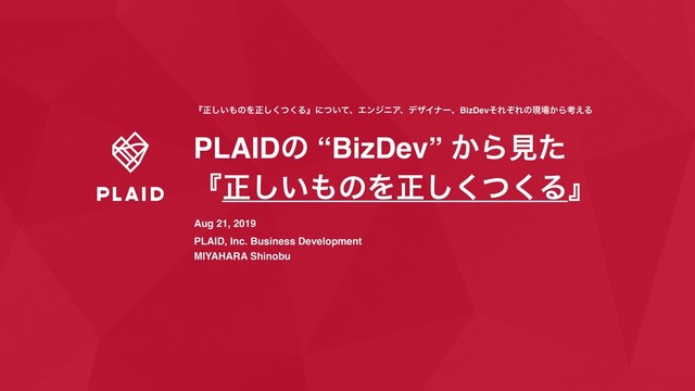 PLAIDのBizDevから見た『正しいものを正しくつくる』 / DevLOVE_20190821