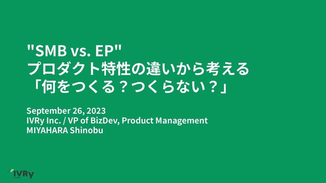 営業リードタイム 解約率 顧客獲得コスト 営業⼈件費 営業体制 プロダクト開発コスト 資本効率 SMB EP ⼩ 短 ⾼ → 低 低 低 Inside Sales/Marketing主体 低 → ⾼ ⾼ (必要資⾦が少ない) ⼤ ⻑ 低 (0.5-1%) ⾼ ⾼ Direct Sales主体 ⾼ (要件が複雑&PoCの時間が⻑い) 低 (必要資⾦が多い) < > = > > = > ref. https://medium.com/@masayukiminato/エンタープライズ-vs-smb-saasの⼭の登り⽅とイノベーションのジレンマ-1a9a8cc7081f お客様との電話コミュニケーションといった、クライアントの 企業活動にとって “Must have” な業務を対象としているため プロダクト開発において、クライアントの業務フローが完了で きるレベルまで品質を⾼めることを強く意識しているため