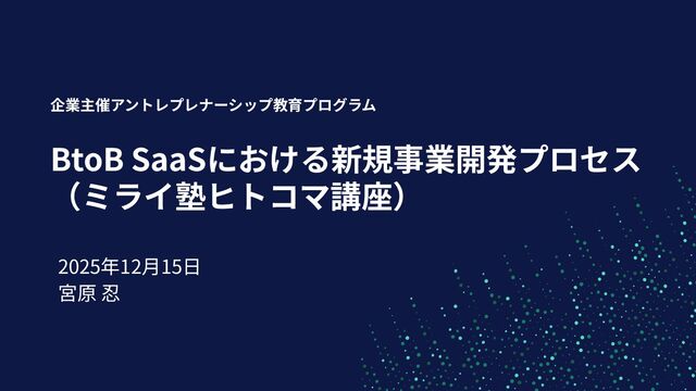 BtoB SaaSにおける新規事業開発プロセス(ミライ塾ヒトコマ講座)
