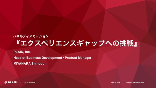 Product Manager MIYAHARA Shinobu ɹɹʛɹɹ© 2019 PLAID Inc. Nov 13, 2019ɹɹʛɹɹQualtrics UserMeetup vol.1ɹɹʛɹ