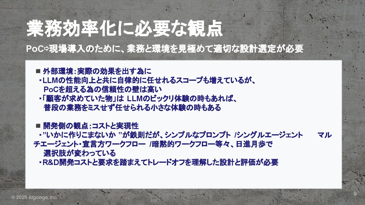 AIAgentのPoCの壁を超えて、実際に業務で効果を出し、業務改善をする為の設計パターンと、