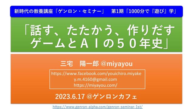 また、テーブルトークPRGは現代のRPGゲームの母体ですが、そのゲームマスターの役割をデジタルゲームで引き継いたのが「メタAI」という人工知能です。「メタAI」は自らステージを作り、物語を作り、敵キャラクターを配置します。このように人工知能は常に遊びの地平を切り拓いてきました。その奔流をお見せできましたらと思います。