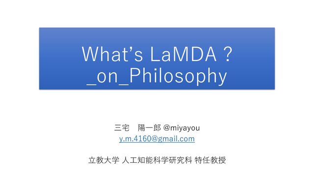 What’s LaMDA ? _on_Philosophy 三宅 陽一郎 @miyayou