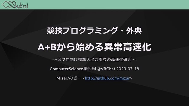 rcx mov r8, rdx movabs rcx, -5421010862428 mov r10, rdx imul r10, rcx movabs r9, 8814407033341083648 mov rax, rdx mul r9 add r10, rdx add rax, rdi adc r10, rsi add r9, rax adc rcx, r10 movabs rdx, -8814407033341083649 cmp rdx, rax movabs rdx, 5421010862427 sbb rdx, r10 cmovae rcx, r10 cmovae r9, rax adc r8, 0 mov rax, r8 mov rdx, r9 ret # aarch64-unknown-linux-gnu udivrem_1e32: mov w8, #60487 mov x9, #18137646891008 movk w8, #51, lsl #16 movk x9, #31315, lsl #48 mov x10, #-16732 mov x13, #-18137646891009 umulh x8, x1, x8 movk x10, #53906, lsl #16 movk x10, #64273, lsl #32 mov x14, #16731 movk x13, #34220, lsl #48 movk x14, #11629, lsl #16 umulh x11, x8, x9 movk x14, #1262, lsl #32 mul x12, x8, x9 madd x11, x8, x10, x11 adds x12, x12, x0 adc x11, x11, x1 adds x9, x12, x9 adc x10, x11, x10 cmp x13, x12 sbcs xzr, x14, x11 cinc x0, x8, lo csel x2, x10, x11, lo csel x1, x9, x12, lo ret A+Bから始める異常高速化 // 2^128 未満の整数 x の入力に対して floor(x / 10^32), (x mod 10^32) を計算 pub fn udivrem_1e32(x: u128) -> (u64, u128) { // (z0, z1) = (floor(x / 10^32), x mod 10^32) // floor((2^128)/(10^32)) = 3402823 let mut z0 = ((((x >> 64) as u64 as u128) * 3402823) >> 64) as u64; let mut z1 = (x - (z0 as u128) * 100000000000000000000000000000000); if let Some(zt) = z1.checked_sub(100000000000000000000000000000000) { z1 = zt; z0 += 1; } (z0, z1) } Mizar/みざー <http://github.com/mizar> 52