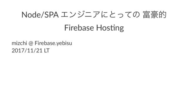 Node/SPA ΤϯδχΞʹͱͬͯͷ ߽త Firebase Hos1ng mizchi @ Firebase.yebisu 2017/11/21 LT