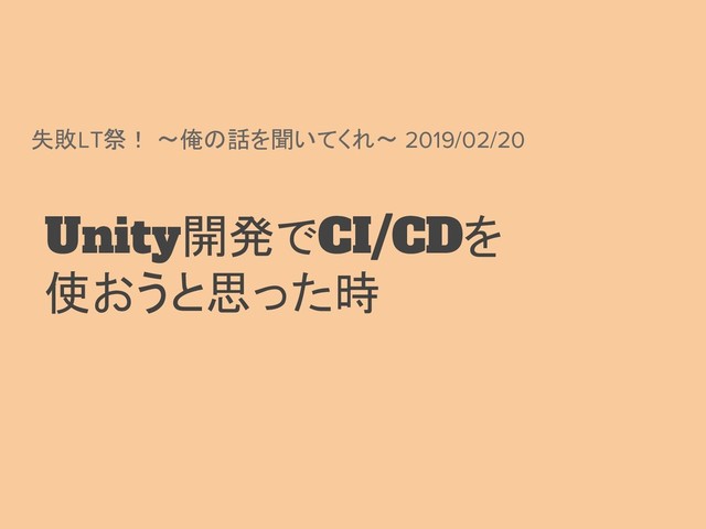 Unity開発でCI/CDを 使おうと思った時 失敗LT祭! 〜俺の話を聞いてくれ〜 2019/02/20