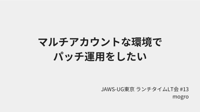 マルチアカウントな環境で パッチ運用をしたい JAWS-UG東京 ランチタイムLT会 #13 mogro