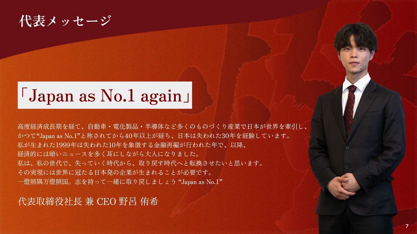 2. 経営メンバー 8 Founder|代表取締役 CEO 野呂 侑希 Yuki Noro 東京⼤学⼯学部。⾼校1年次にYahoo! Open