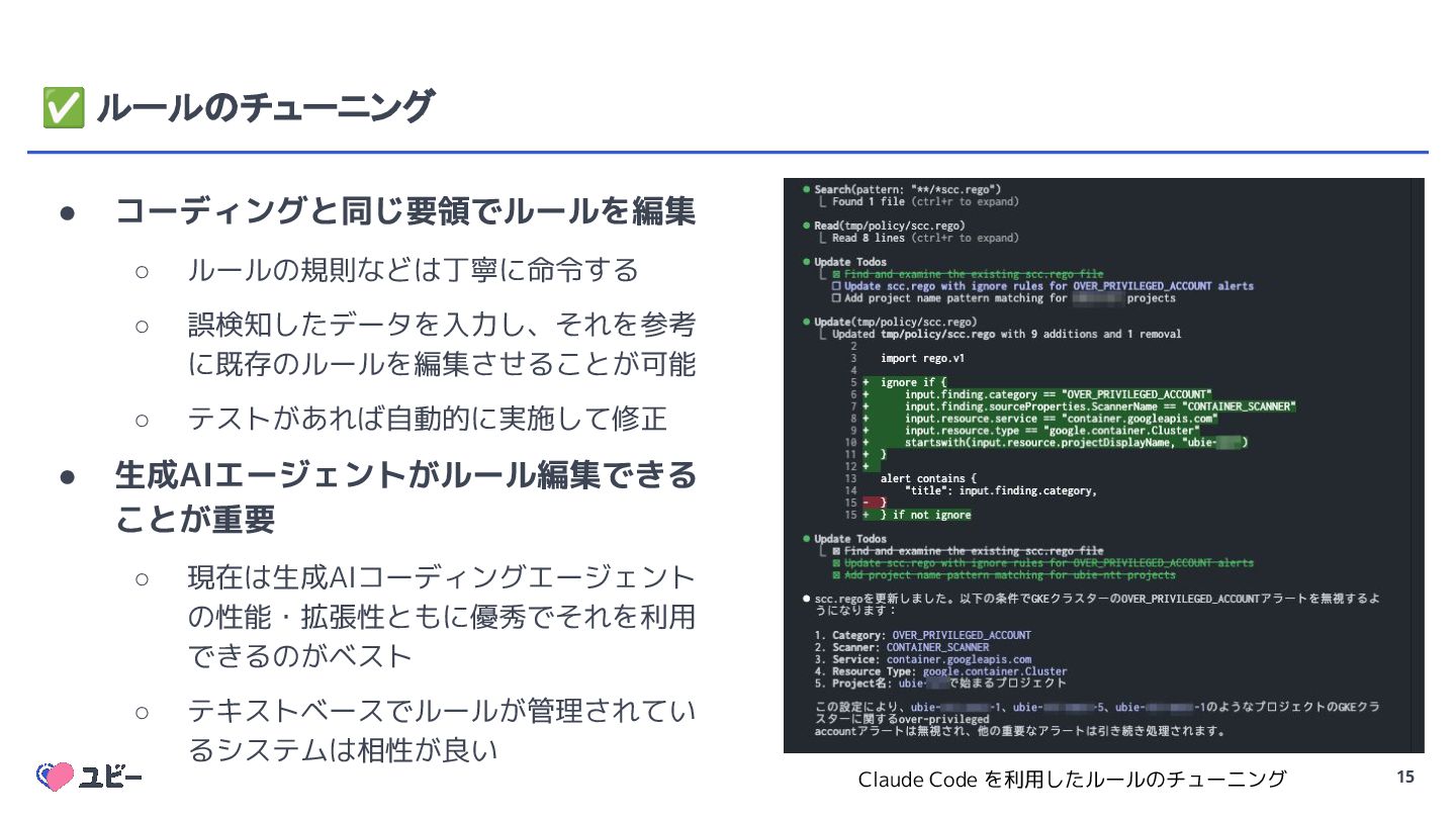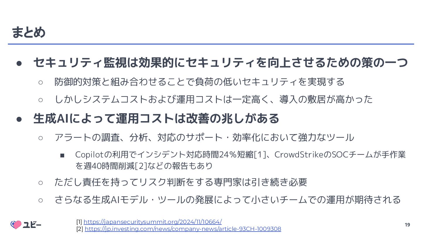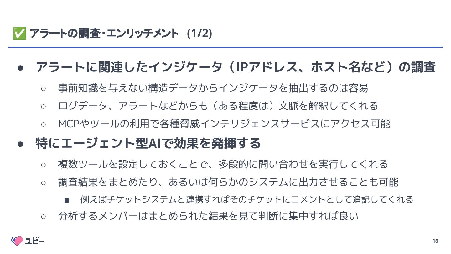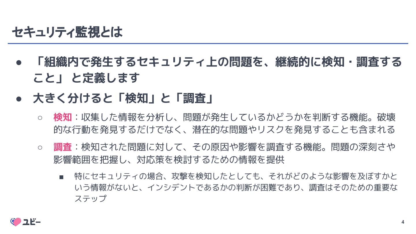Operation” など • セキュリティ監視の運用効率を改善するための概念 ◦ Detection Engineering: アラート検知に関するプロセスをソフトウェアエンジニアリングの手法で改善する考え方 ◦ Autonomic Security Operations: SOC全体の自律性を高めるための取り組み • セキュリティ監視にソフトウェア開発のアプローチを導入 ◦ コード化 (as Code): 検知ルールや対応手順をコードで管理 ◦ 自動化 (CI/CD、Workflow): ルールのテストから適用、さらに対応の一部を自動化 • 期待される効果 ◦ 品質向上: レビューや履歴管理でルールの質を高める ◦ 迅速化、効率化: 定型作業から解放され脅威への対応やルール改善のサイクルが加速