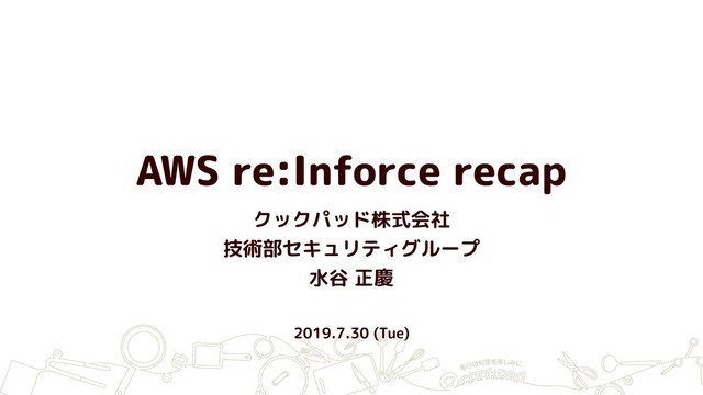 AWS re:Inforce recap クックパッド株式会社 技術部セキュリティグループ 水谷 正慶 2019.7.30 (Tue)