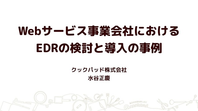 Webサービス事業会社における EDRの検討と導入の事例 クックパッド株式会社 水谷正慶