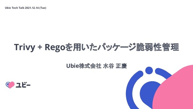 Trivy + Regoを用いたパッケージ脆弱性管理 Ubie株式会社 水谷 正慶 Ubie Tech Talk 2021.12.14